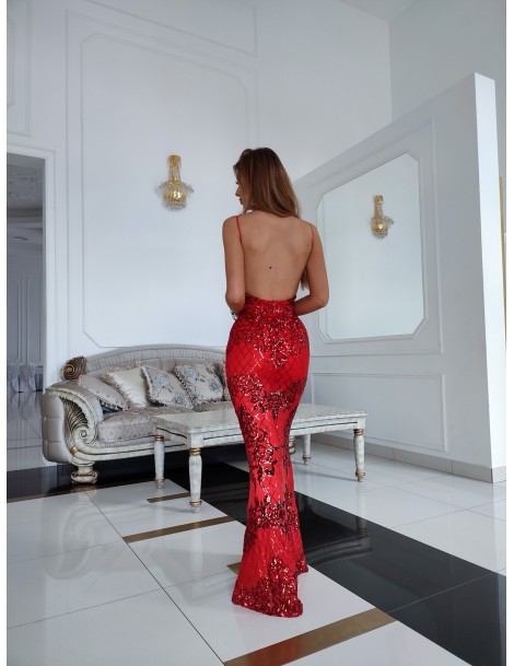 Sukienka maxi cekinowa z odkrytymi plecami czerwona