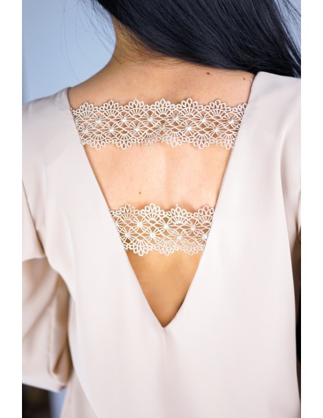 Bluzka z dekoltem w serek i odkrytymi plecami beżowa