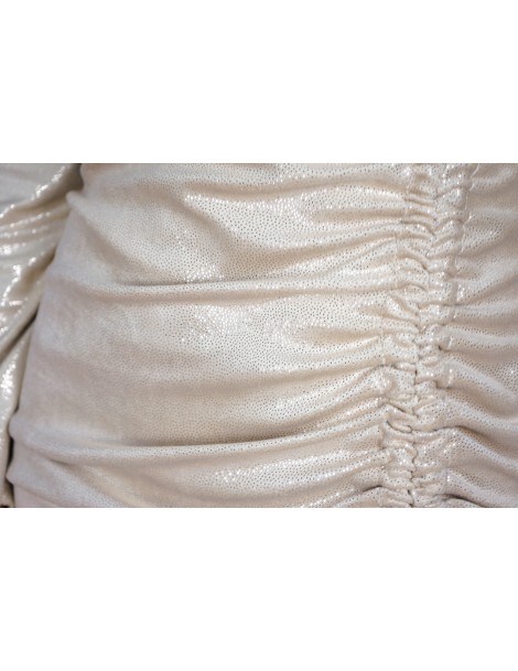 Sukienka welurowa z marszczeniem błyszcząca beżowa