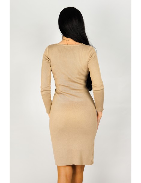 Sukienka sweterkowa dopasowana z rozcięciem beżowa