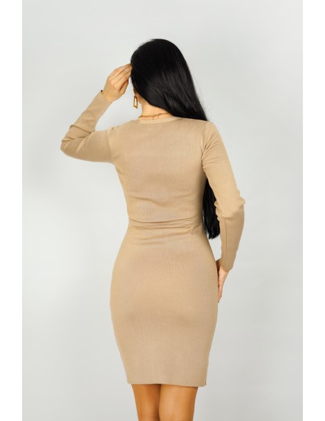 Elegancka sukienka sweterkowa w kolorze beżowym. Idealna na chłodniejsze jesienne i zimowe dni.