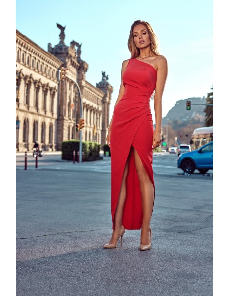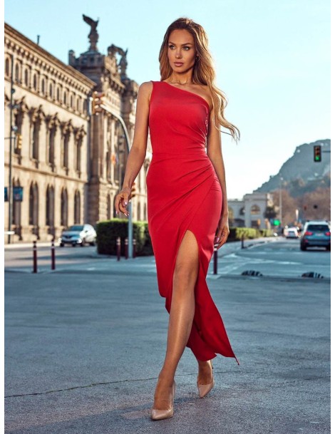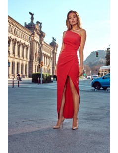 Sukienka maxi kopertowa na jedno ramię czerwona
