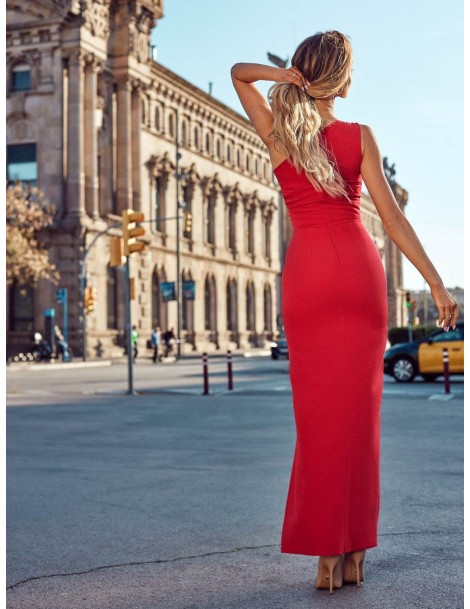 Sukienka maxi wykonana z gładkiego materiału w kolorze intensywnej czerwieni. Sprawdzi się idealnie na wesele, sylwestra oraz inne okazje.