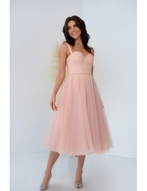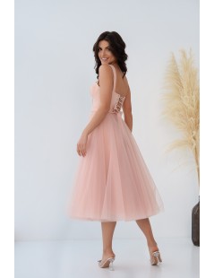 Sukienka midi tiulowa z gorsetem pudrowy róż